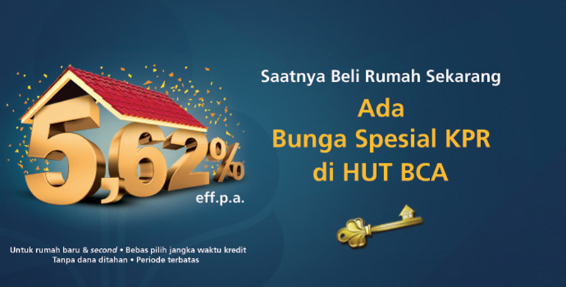 Bukan cuma itu lho! Bank BCA juga mengerti para millennial yang ingin memiliki rumah. Karena itu, BCA memiliki program spesial bunga ringan KPR BCA, Cuma 5,62%. Selain itu, di tanggal 22 – 24 Februari 2019, akan ada acara BCA Expoversary yang akan diselenggarakan di ICE BSD. Acara ini merupakan satu wadah untuk menikmati berbagai penawaran spesial dari BCA. Mulai dari fashion, makanan, minuman, hingga rumah, semua ada di sini.
